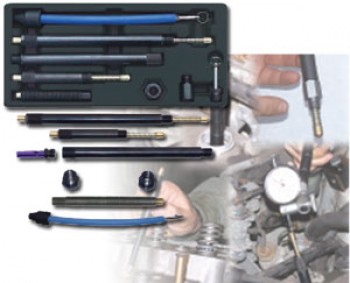 | The Engine Calibration & Set-up Kit gives you innovative tools that help eliminate mistakes when setting up mechanical engine timing sequences, timing chains, timing belts, balance shafts and belts, distributor installations and general engine set-up. Kit Includes: ?Standard 6" (14mm) and Extended 10.75" (14mm) ?TDC Indicators ?Compression Gauge Extension ?Compression Whistle Alert? ?Crank Stopper ?18mm & 12mm Spark Plug Hole Adapters, extra nipple for compression tube to whistle conversion. Engine Calibration & Set-Up Kit |